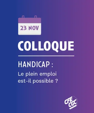 Le 23 novembre prochain, la CFE-CGC organise en partenariat avec l’Agefiph, un colloque handicap sur le thème : « Le plein emploi est-il possible ? ». L’événement aura lieu à l’hôtel Novotel Paris Vaugirard (15e).